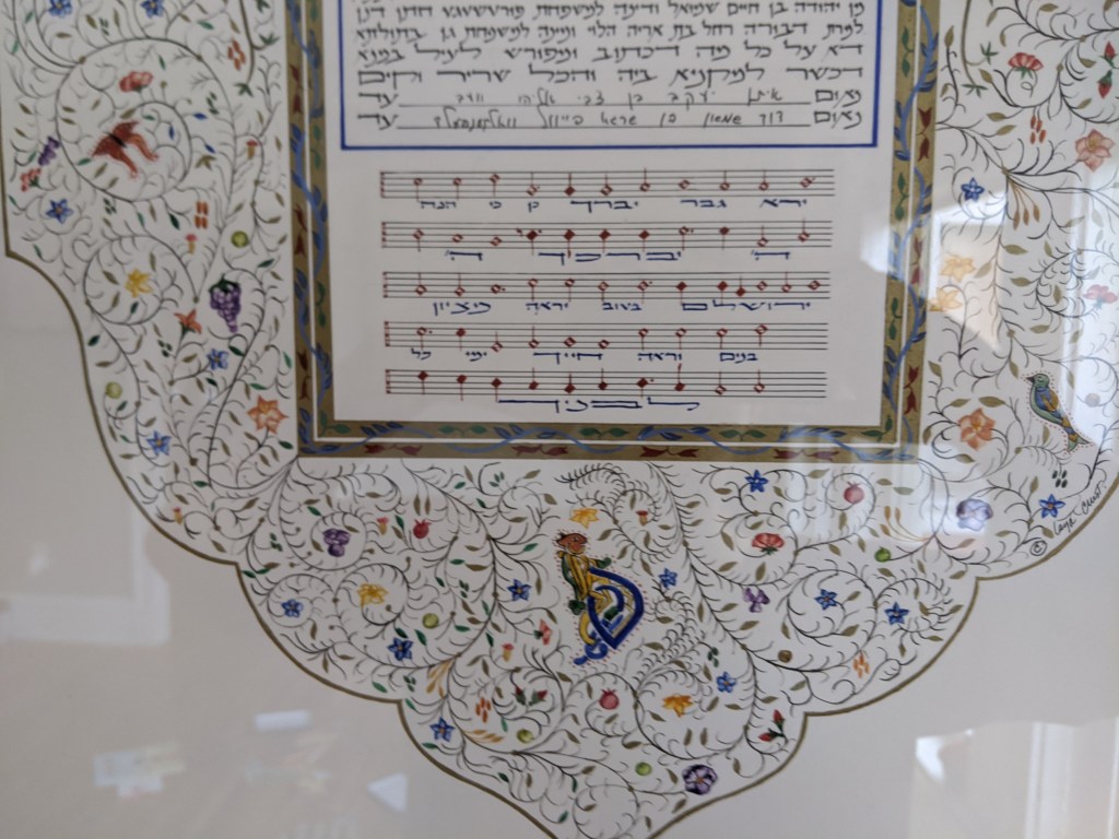 This is a picture of the bottom of my beautiful ketubah (Jewish wedding contract). Here it is in the full context: