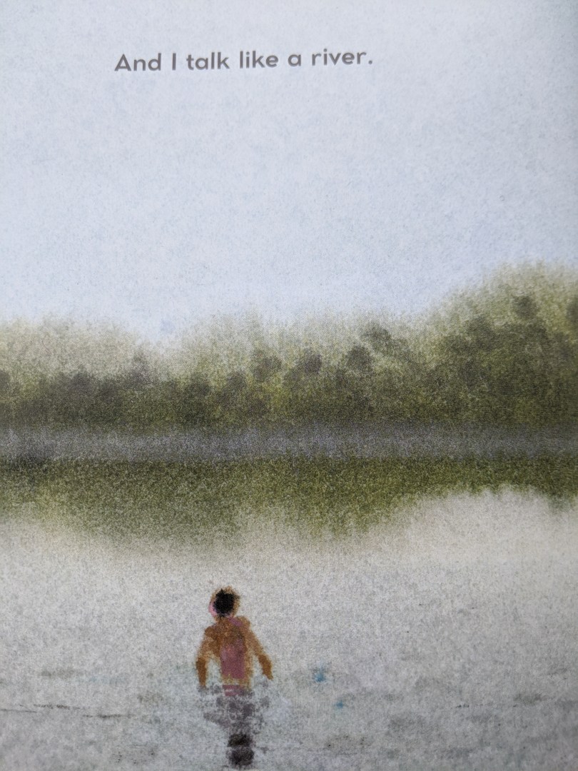 I Talk Like a River is a poem-story by Jordan Scott, illustrated by Sydney Smith. I regret that I’ve never read anything else by Jordan Scott; his wordsmithing is incredible and I intend to read more.