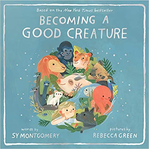 It’s utterly bizarre to me to think that an author as influential in my house as naturalist Sy Montgomery has never yet made it onto my blog. Grappling with how that could have happened, I realized that I’m pretty sure that my last post on the Changeling’s marsupial research was on Welcome, Wombat so I don’t think I’ve even told you about The Quest for the Tree Kangaroo or any of her other marsupial books at all. And yet we’ve been slowly but surely gathering quite the collection of Sy Montgomery books, including, first, How to Be a Good Creature (really pitched for adults) and, more recently, the picture book adaptation of that excellent, wise book, likewise illustrated by Rebecca Green, Becoming a Good Creature. (NB: How to Be a Good Creature is not a children’s book and a parent should read it first due to some quiet but honest references to severe depression and even suicidal ideation, but I don’t think there’s anything a clever kid can’t handle– my Changeling is 7 years old and adores this book– and Rebecca Green’s illustrations catch a child eye.)