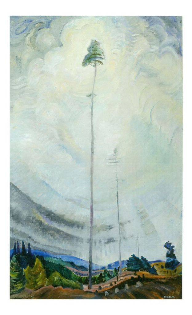 Lauren Soloy did a wonderful job of making this story– and the art– both general and specific. Any child will be able to relate to Emily-as-Small’s feelings of repression and liberation, I think– and the story of the artist as well as the art is perfectly attuned to the historical context, too. The Canadian author-artist story goes back so far, both as far as and far preceding Emily Carr. One of the things to love about Emily Carr’s art, in fact, is that it represented a world of nature and art far beyond her own work. She was not a self-aggrandizing artist, though she knew her own worth, and you can see how steeped she was in the richness of her environment in so many ways. Lauren Soloy points to this one painting by Carr, “Scorned as Timber, Beloved of the Sky,” as a particular influence on When Emily Was Small, but “Totem Forest” shows her keen eye for the world around and the Indigenous art surrounding her yet more explicitly: