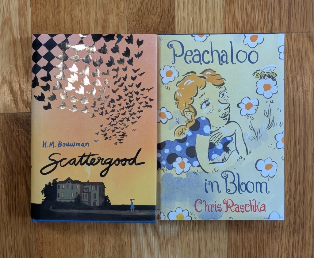 Behold Peachaloo in Bloom by Chris Raschka and Scattergood by H.M. Bouwman. One is bubbly, the other often bleak. One is set probably now, and the other in the past. One is optimistic, and the other enmeshed in the confusion of no right answers. The protagonist of one is named Peachaloo, and the other Peggy.